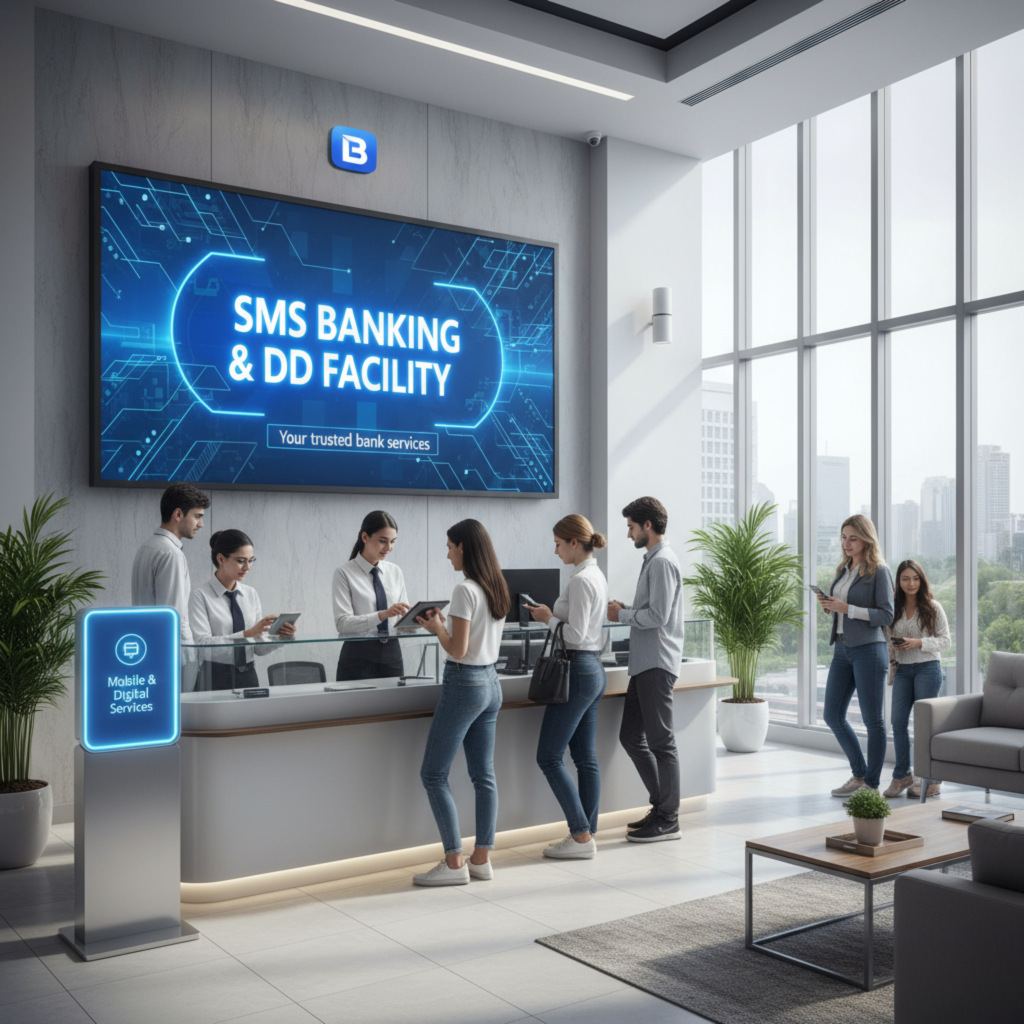 Our SMS Banking service keeps you updated on all transactions and allows easy DD requests anytime, anywhere.